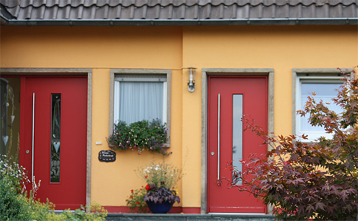 Eingangstür mit Lichtausschnitt als Raute