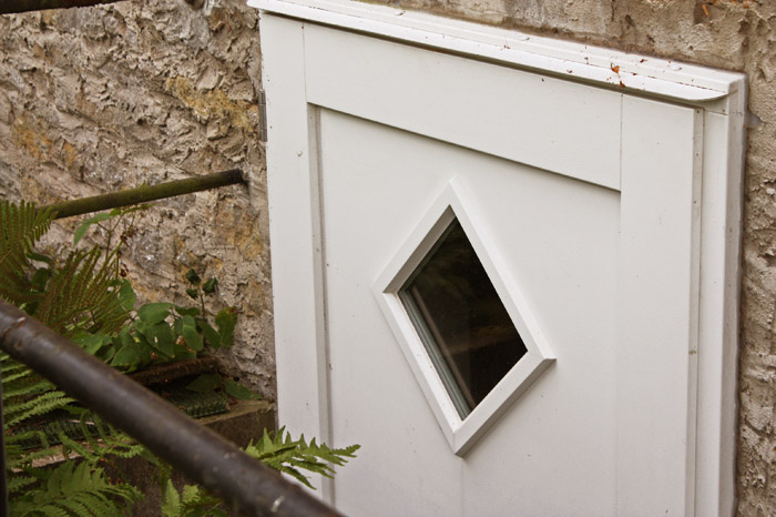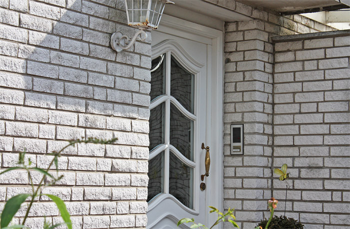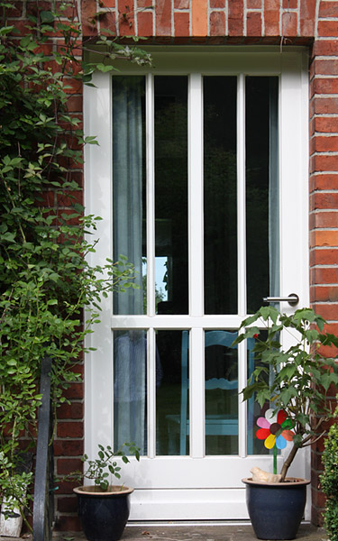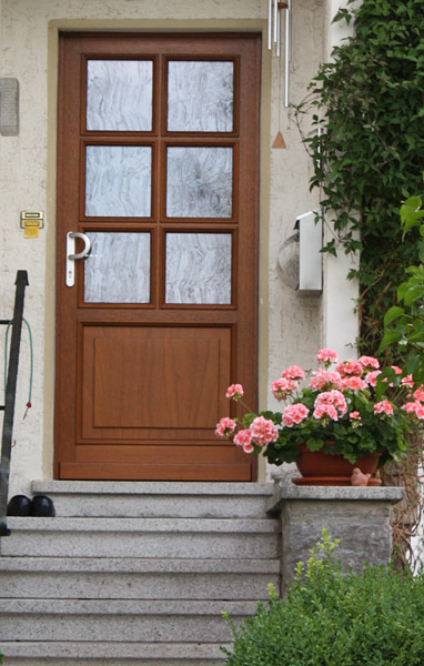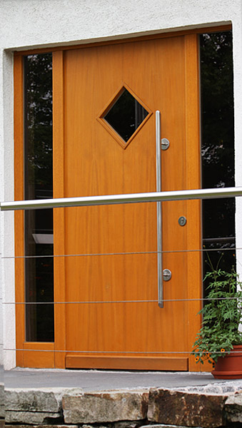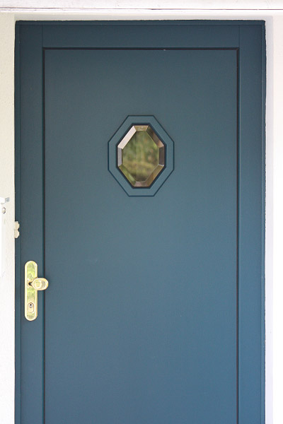 Eingangstür mit Lichtausschnitt als Raute