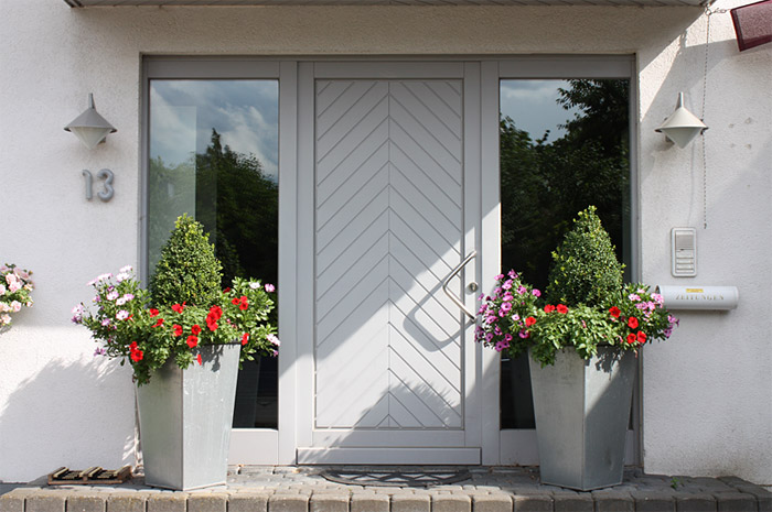 Eingangstür mit Türfüllung als Fischgrätmuster